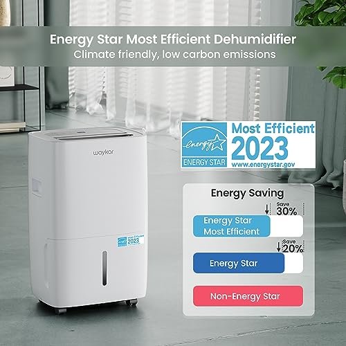 - ENERGY STAR CERTIFIED & ELIMINATES MOSTURE EFFECTIVELY- Waykar ENERGY STAR certified Dehumidifier cut down your hassle on energy with maintaining an ideal room humidity, to quickly and effectively absorb moisture without racking up your energy bill.