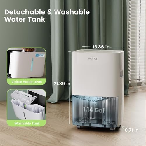 - QUIET EXPERIENCE & LIGHTWEIGHT PORTABLE DESIGN AT HOME- With a unique quiet design, you will enjoy a quiet experience in the comfortable and dry air. The oscillating fan helps dry your room faster while with lower DB of noise. Put it in your bedroom, and you’ll have a quiet and cozy day with the dehumidifier working beside you. The Waykar dehumidifier is compact and lightweight. The casters at the bottom make it easy to move the machine from one room to another.